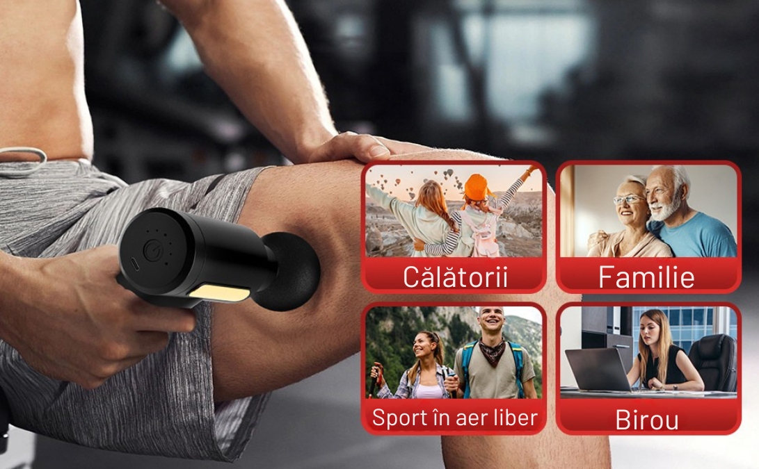 Ideal pentru recuperare musculară după sport. Viteze variate, masaj profund, fără zgomot deranjant.