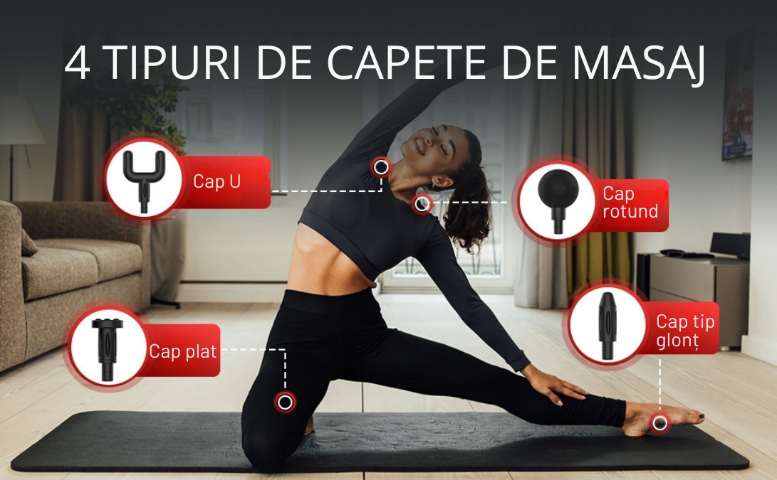 • Masaj personalizat: Cu viteza ajustabila si capetele interschimbabile, puteti personaliza fiecare sesiune de masaj pentru a se potrivi nevoilor si preferintelor dvs.
