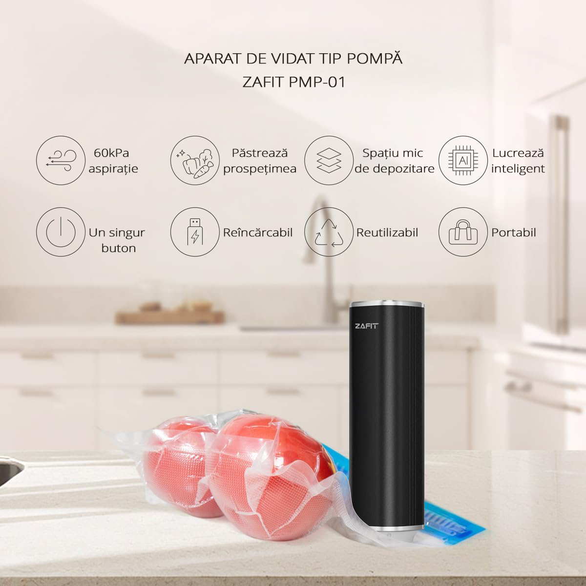 Cu ZAFIT™ PMP-01, pastreaza alimentele proaspete, organizeaza-ti spatiul inteligent si bucura-te de un aparat fiabil si elegant pentru orice ocazie! Ideal pentru gospodarii moderne si stiluri de viata active.
