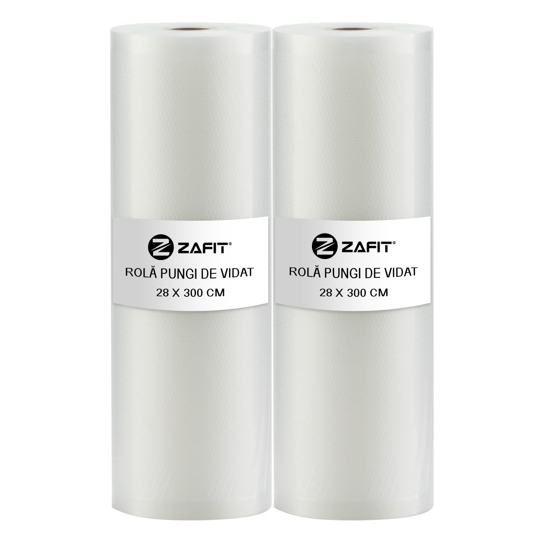 Set 2 role pungi de vidat gofrate ZAFIT™, 28 x 300 cm, pentru aparat de vidat alimente, reutilizabile, rezistente, sous vide, lavabile in masina de spalat, fara BPA, transparent