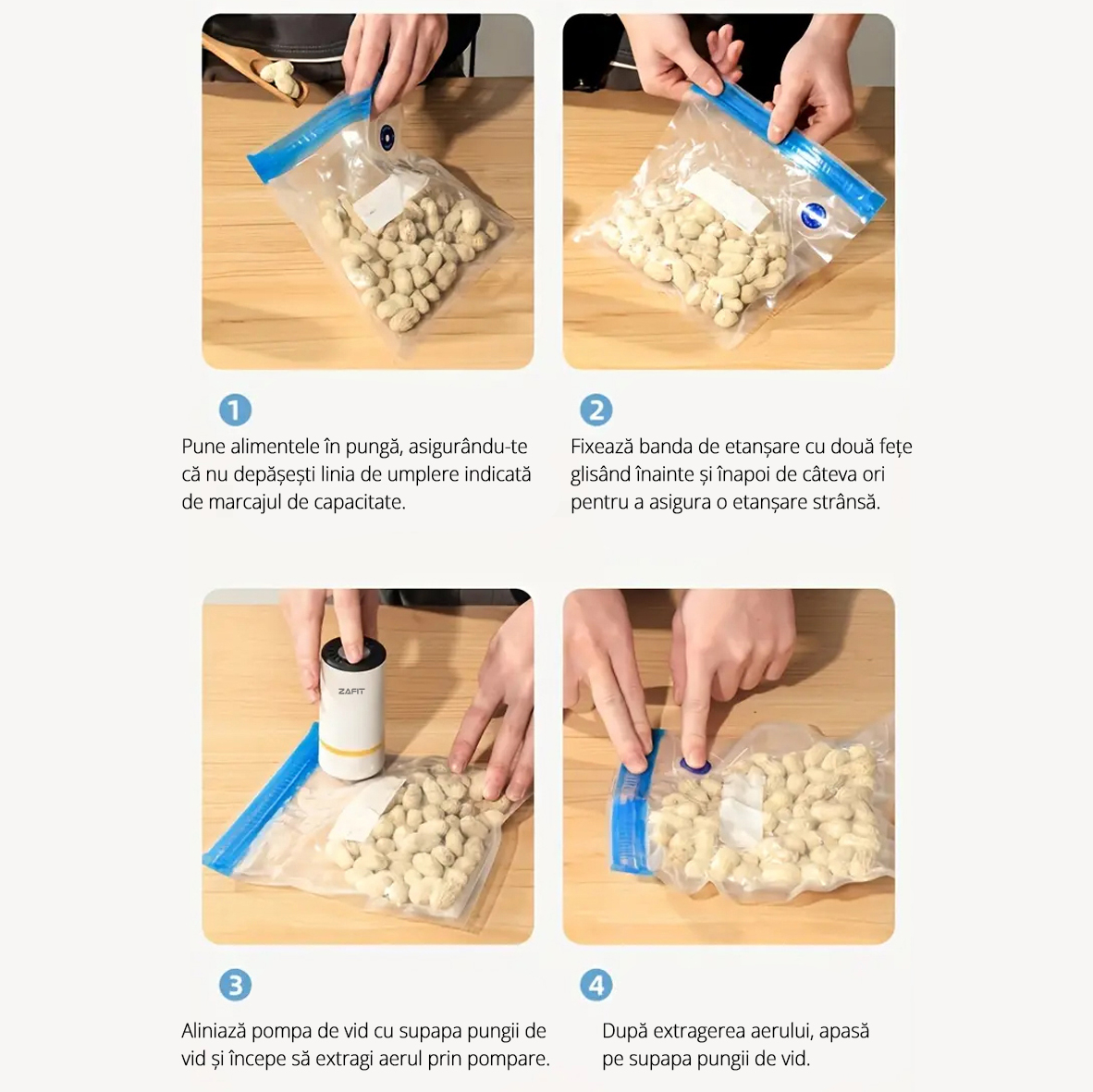 Открийте вакуумната помпа ZAFIT™ PMP-02 – идеалното решение за запазване на храните свежи за по-дълго време! Този преносим и презареждаем уред е лесен за използване, перфектен за запечатване на хранителни продукти във вакуумни торбички, предотвратявайки окисляването и удължавайки срока на годност на продуктите ви.