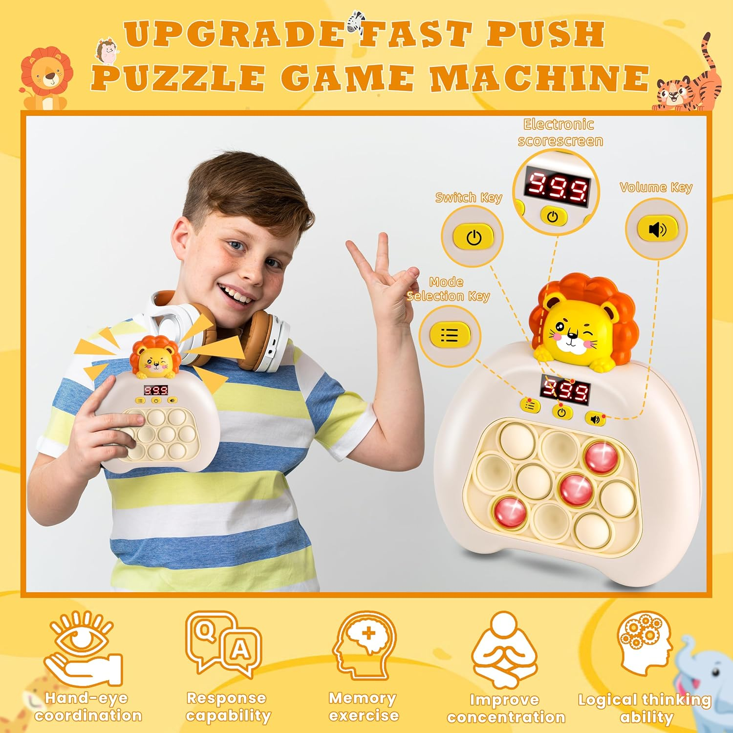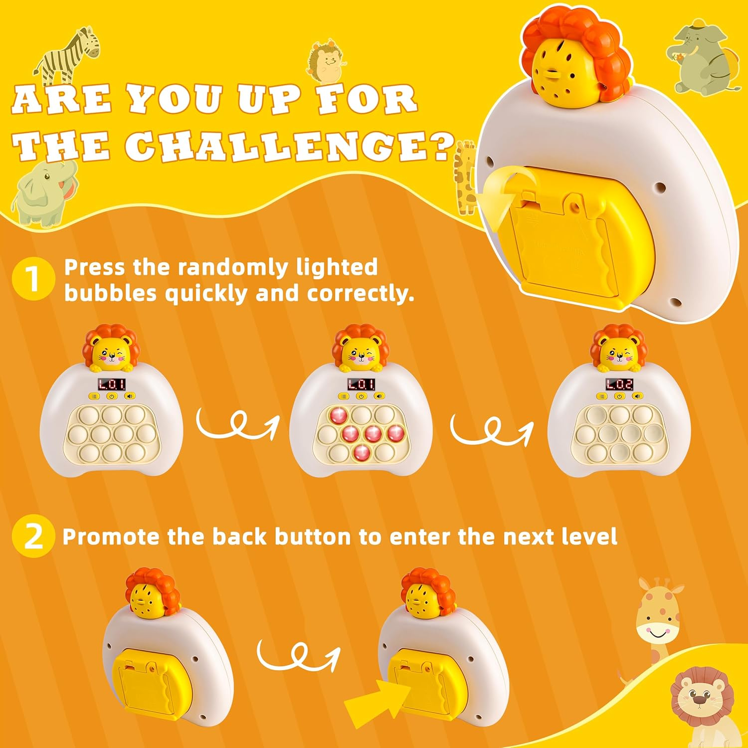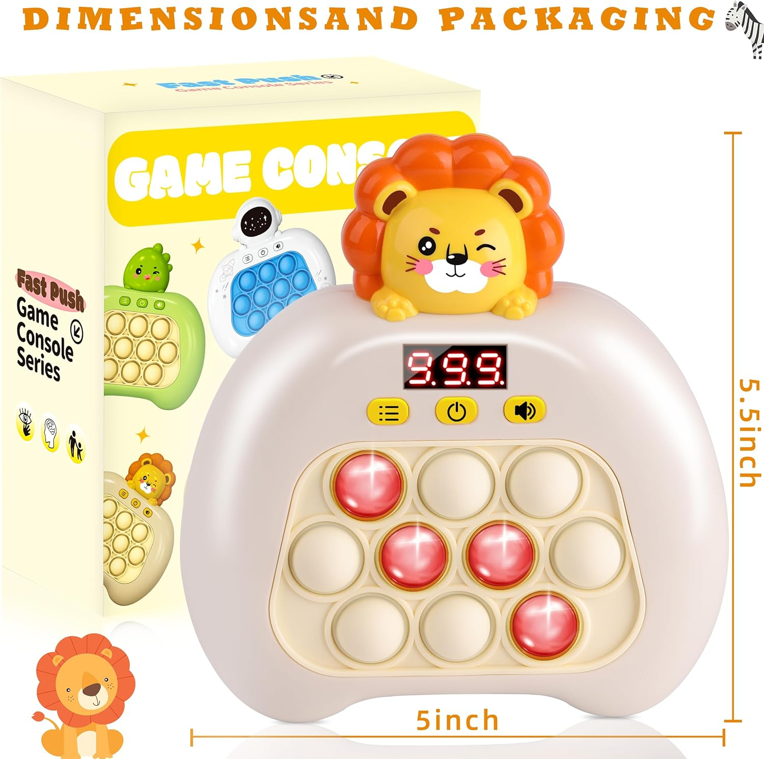 LED екран с нива и множество игрови режими: Тази нова версия за 2024 г. на бързата игра с бутони предлага до 10 игрови режима, а LED екранът показва колко нива сте преминали. Елегантната подаръчна кутия и настройката с 999 нива правят тази игра перфектна за играчи от всички възрасти. Това е pop it машина за игри, която тренира реактивността ви и подобрява концентрацията чрез бързо натискане за преминаване на нивата с помощта на светлини и музика, стимулирайки сензорното развитие на играчите.