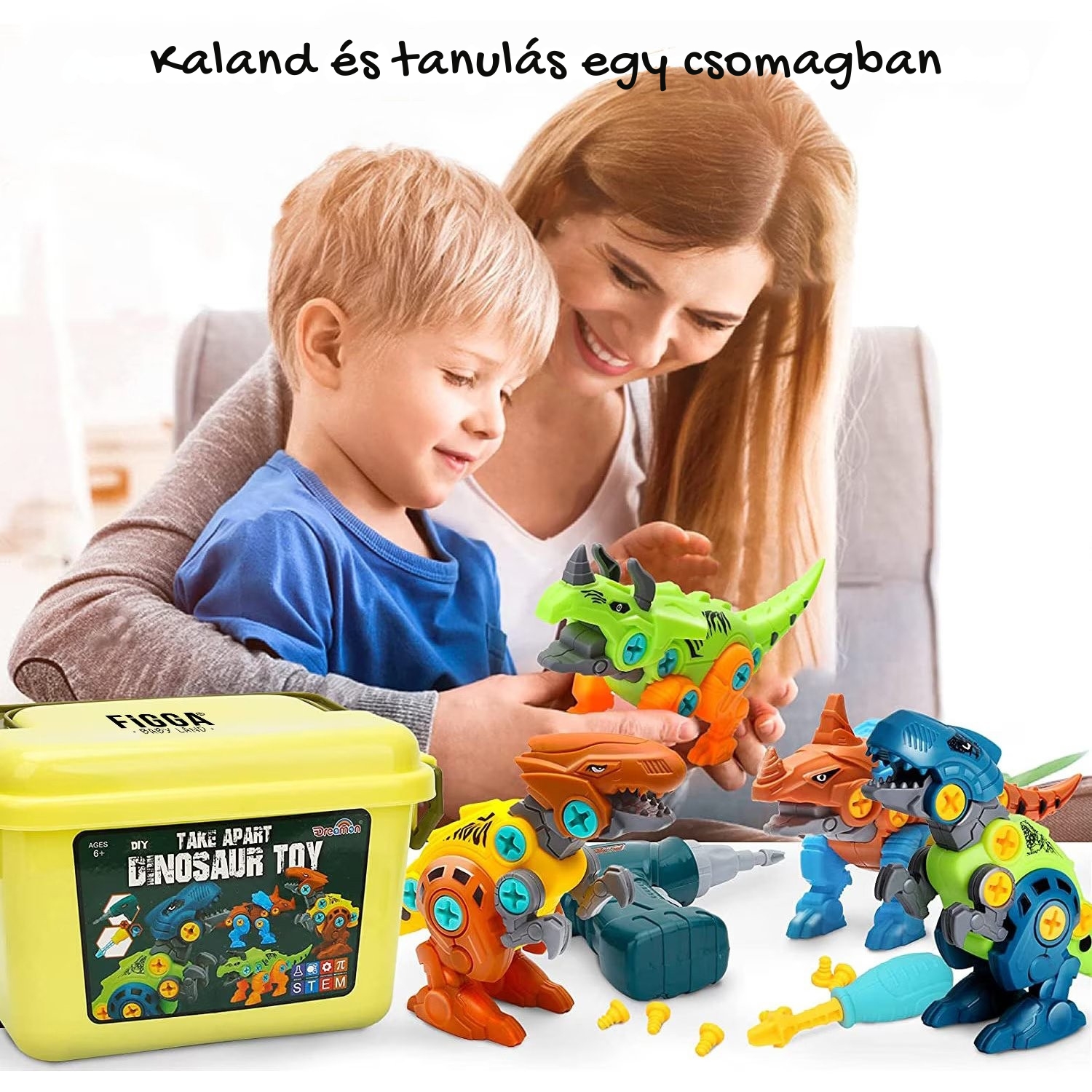 FiGGA® összeszerelhető dinoszaurusz készlet gyerekeknek, tárolódobozzal, elektromos csavarhúzóval, interaktív játék fiúknak és lányoknak 2–8 éves korig