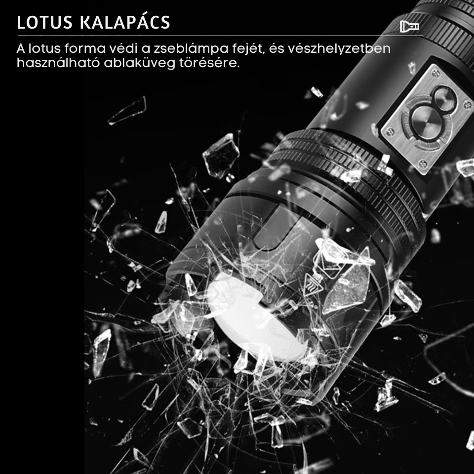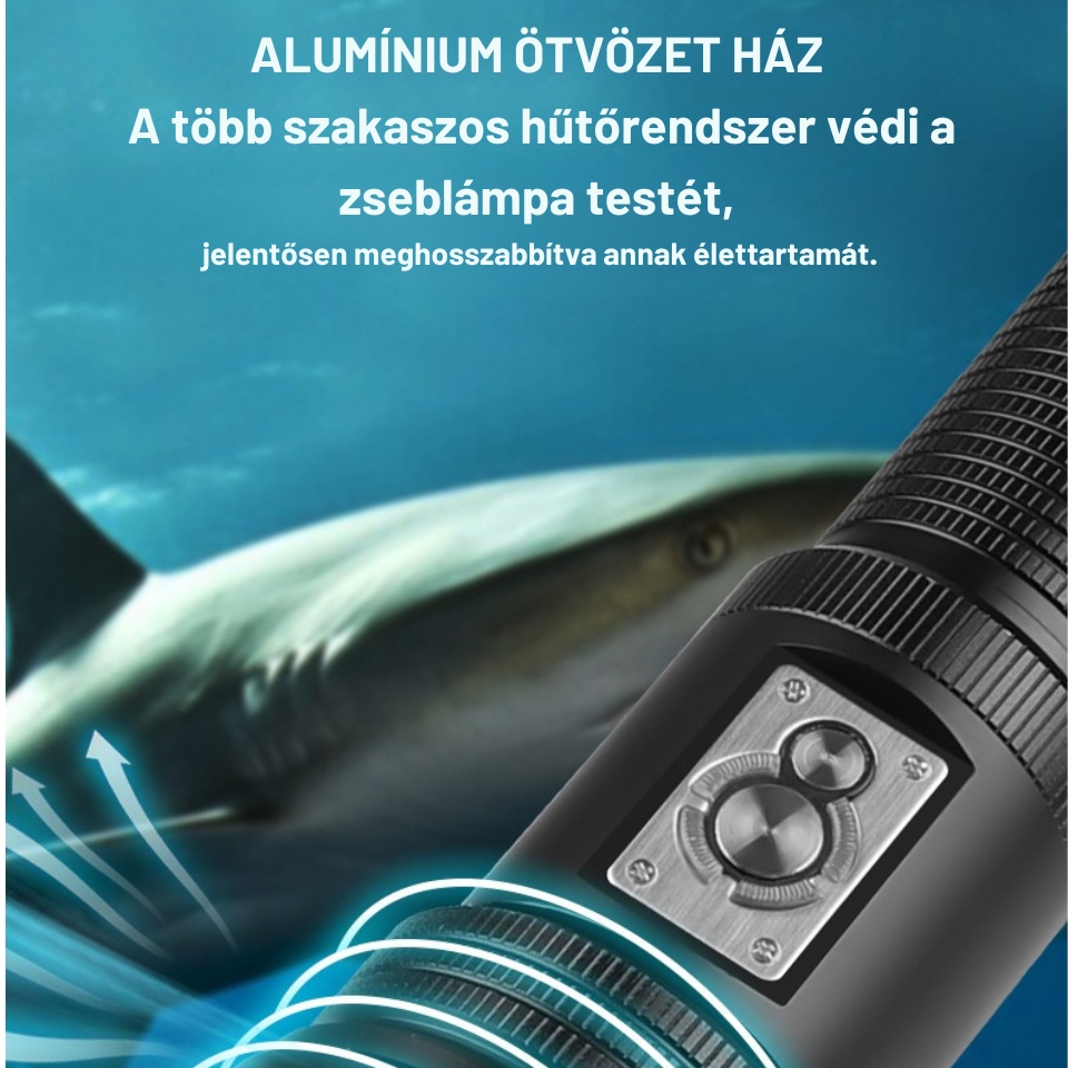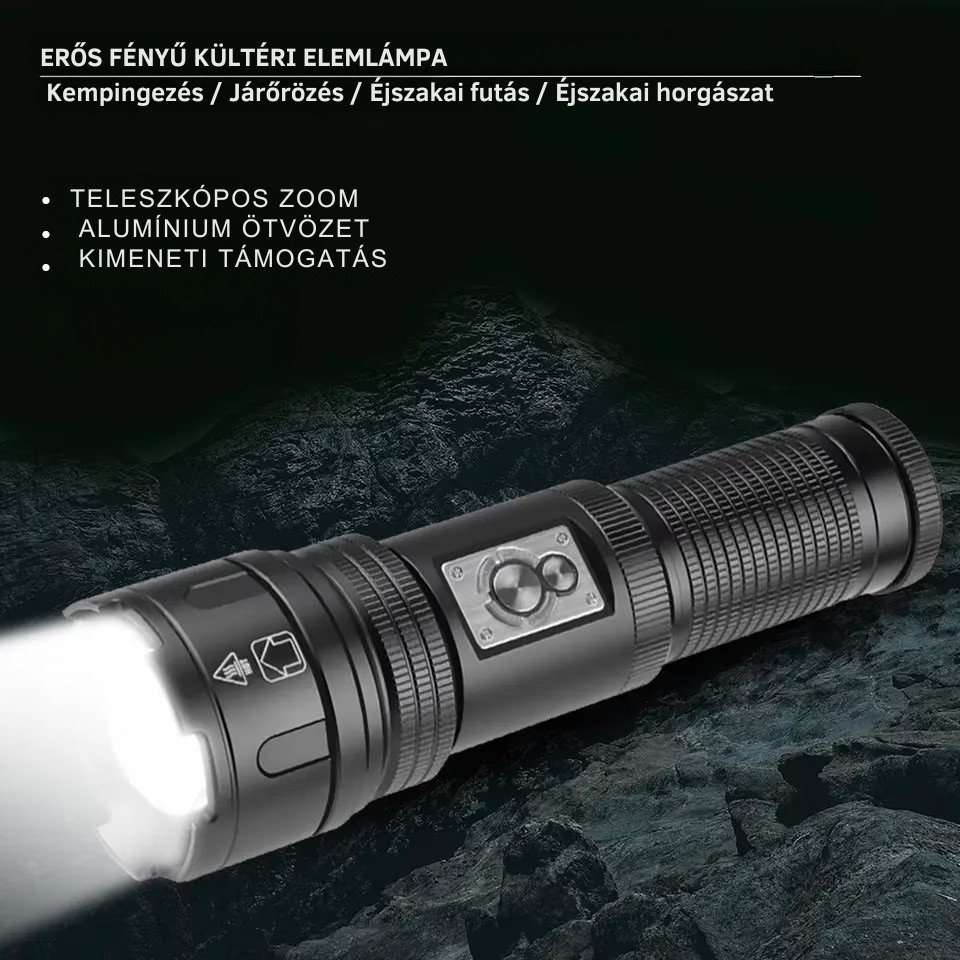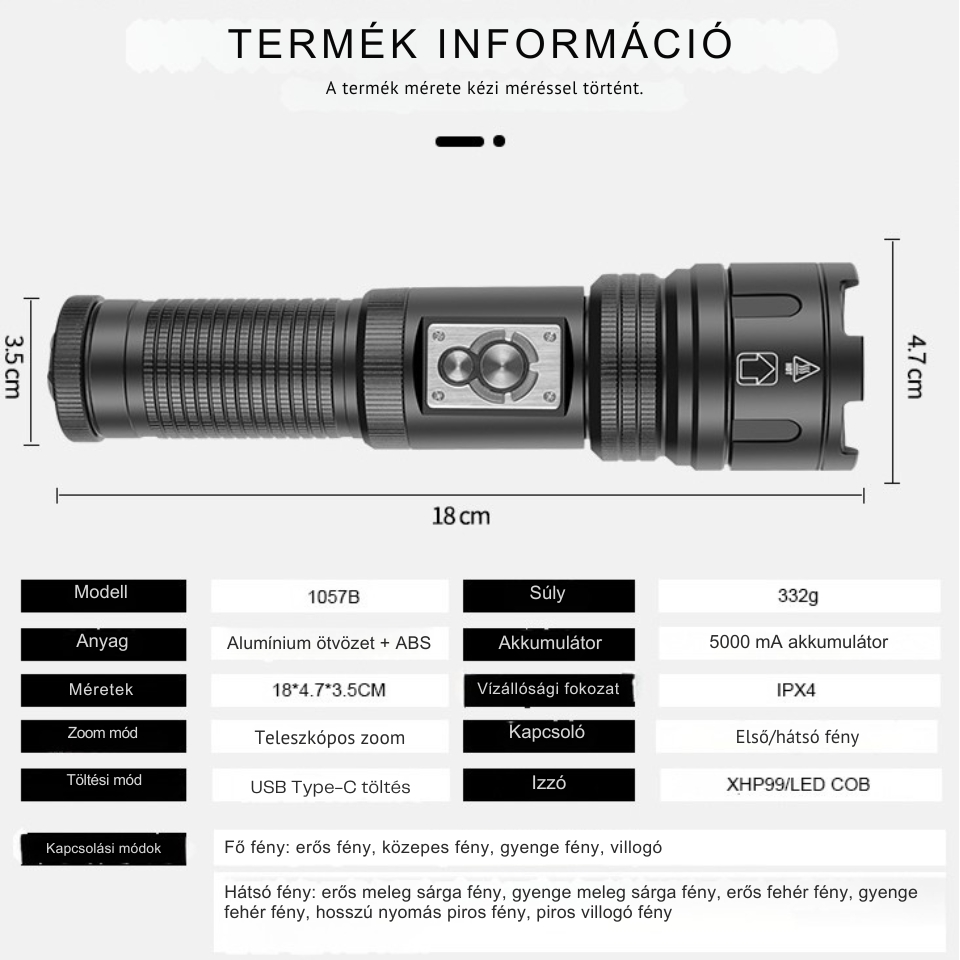 Erős, professzionális FiGGA® zseblámpa, LED XHP-99 + COB, 30000 lumen, 26650 Li akkumulátor, alumínium ötvözet ház, töltőkábel