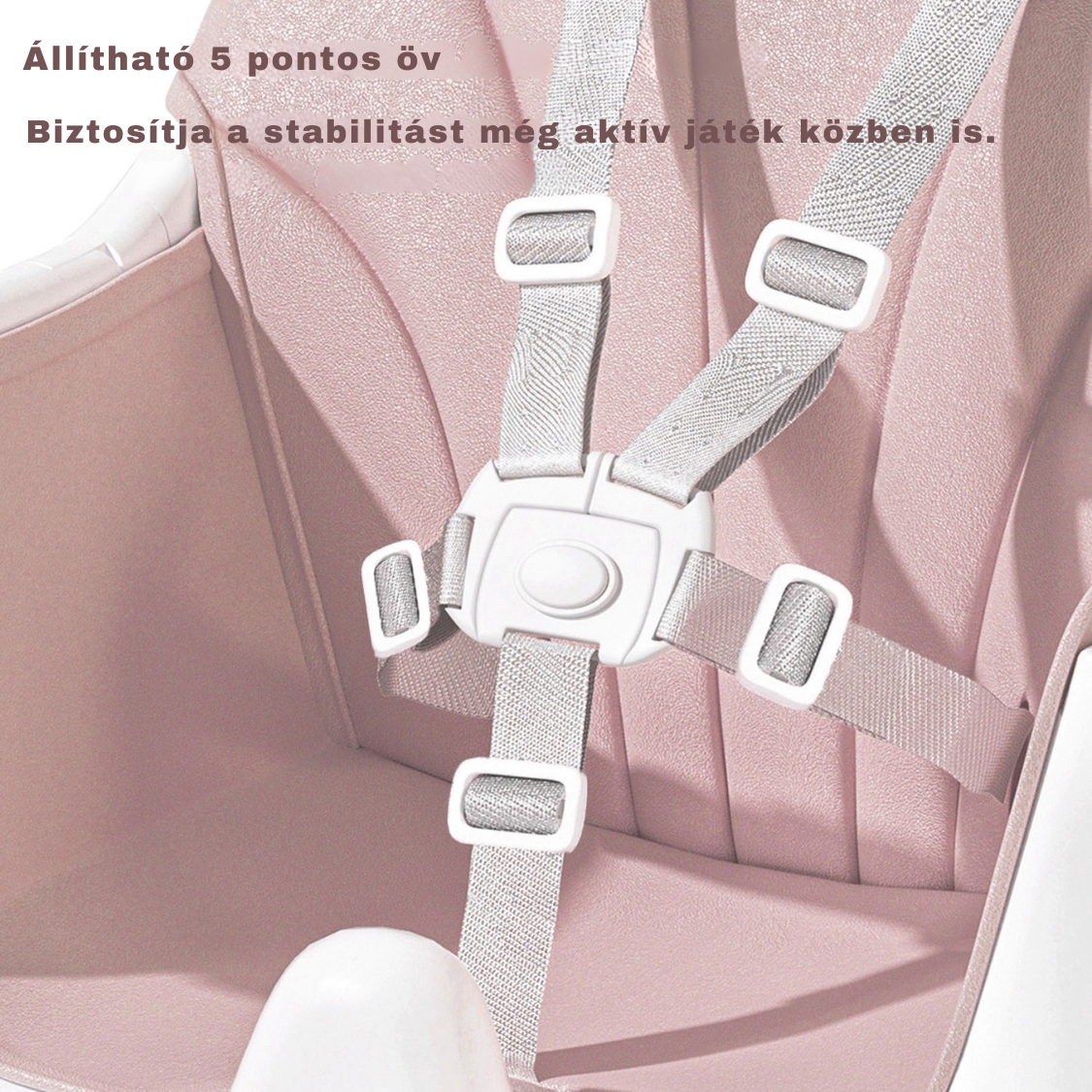 Fokozott biztonság, megvédi a gyermeket a kicsúszástól, és stabilitást biztosít még aktív játék közben is.