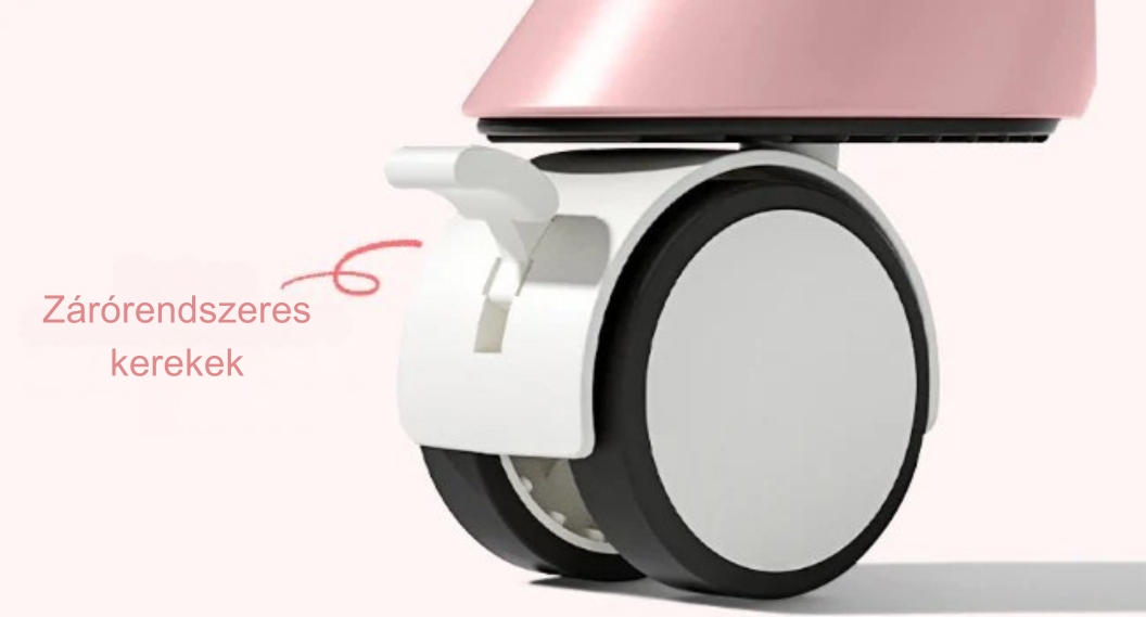 4 kerékkel felszerelve a szék gyorsan áthelyezhető egyik helyiségből a másikba, a kerekek pedig zárhatók a stabilitás érdekében.