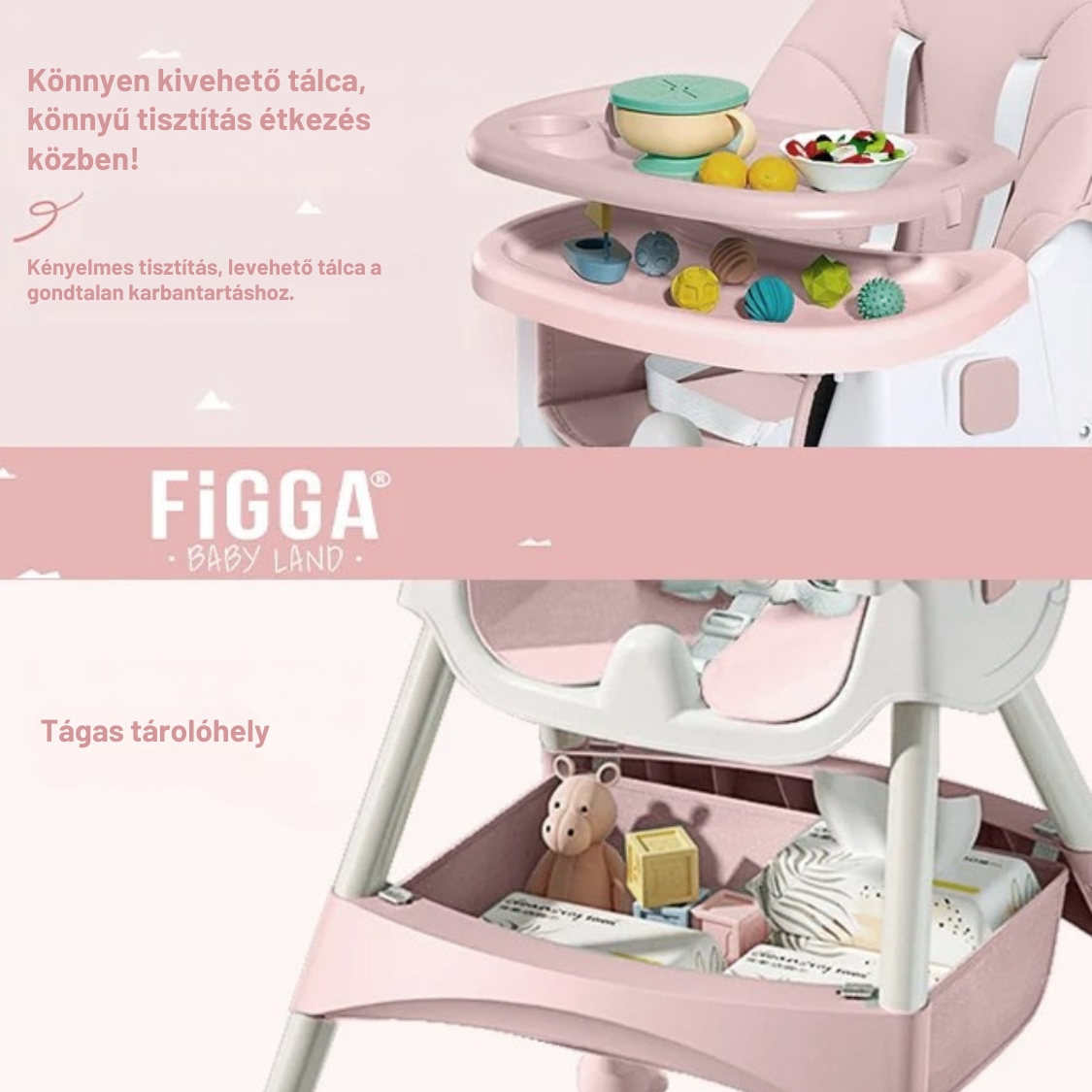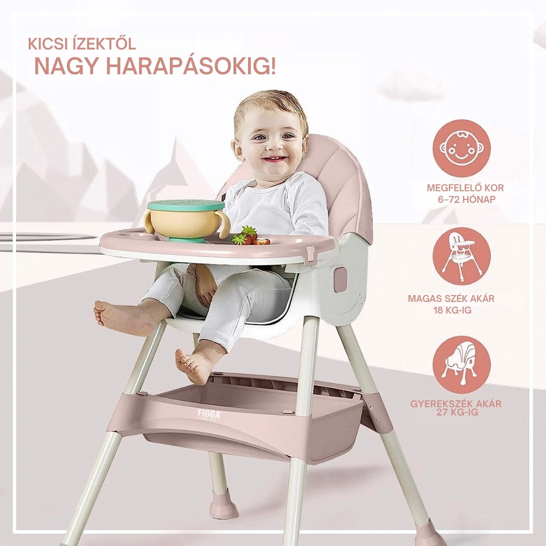 Biztosítja gyermeked kényelmét és biztonságát minden étkezésnél a FiGGA® 4 az 1-ben etetőszékkel, mely 6 és 72 hónap közötti gyermekek számára készült.