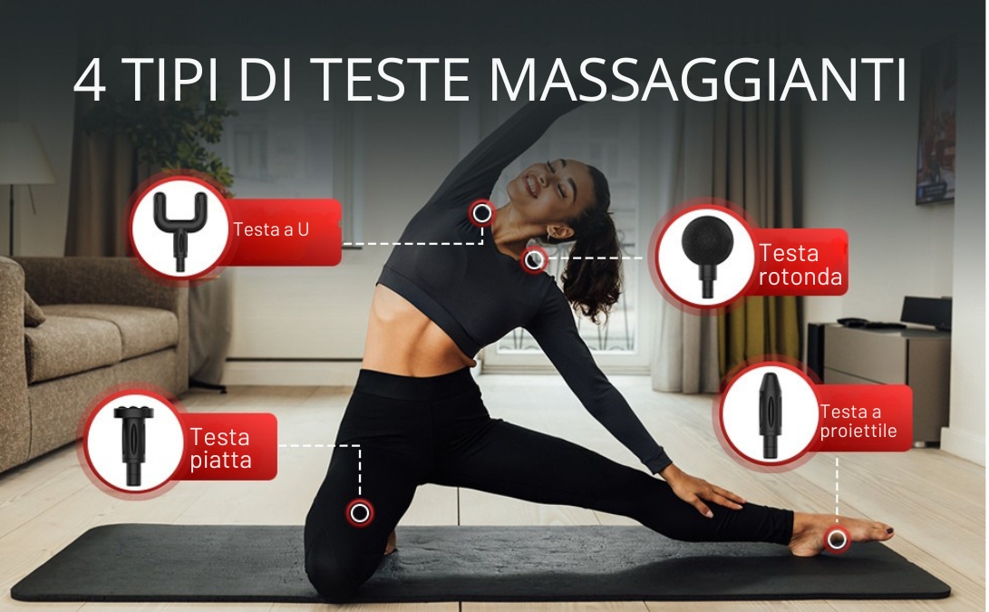 Massaggio personalizzato: Con la velocità regolabile e le testine intercambiabili, potete personalizzare ogni sessione di massaggio in base alle vostre necessità e preferenze.