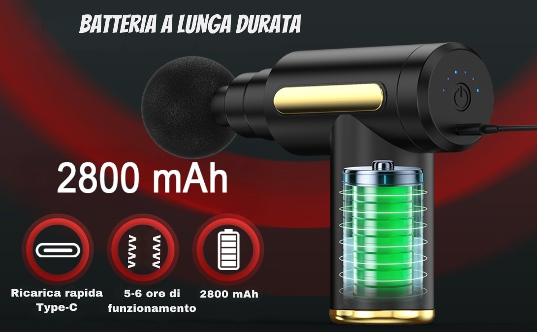 Batteria potente da 2800mAh: Il massaggiatore FiGGA® è dotato di una batteria ad alta capacità, che consente un utilizzo prolungato senza frequenti ricariche.