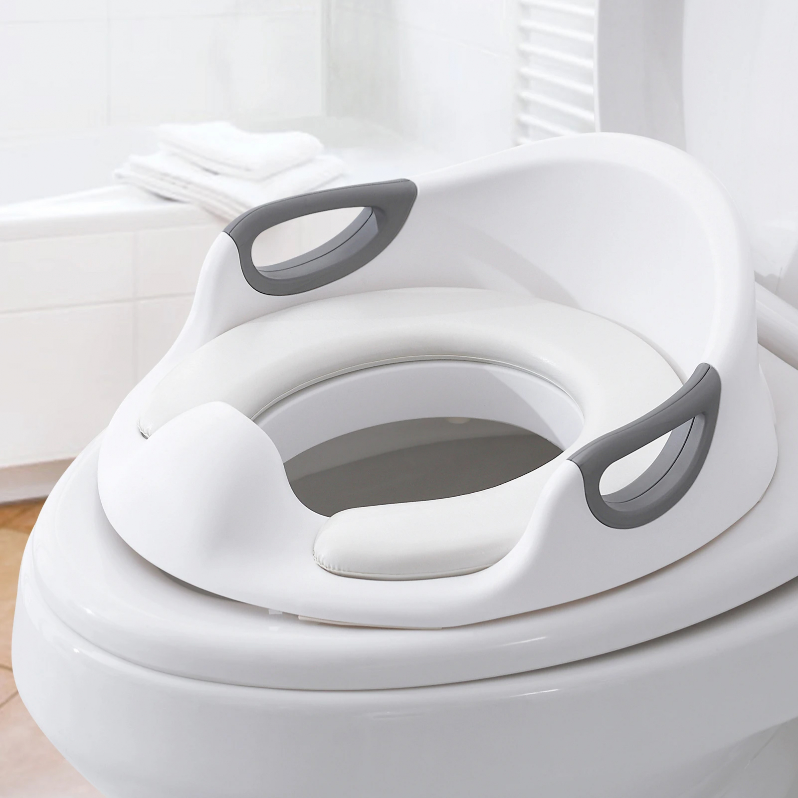 Maniglie ergonomiche. Facile da pulire e dal design elegante. Rimane più igienico rispetto al normale sedile WC, poiché non ci sono fessure dove i germi possano annidarsi o proliferare. Inoltre, la protezione integrata contro gli schizzi di urina indirizza il getto direttamente nel WC, riducendo gli incidenti sul pavimento.