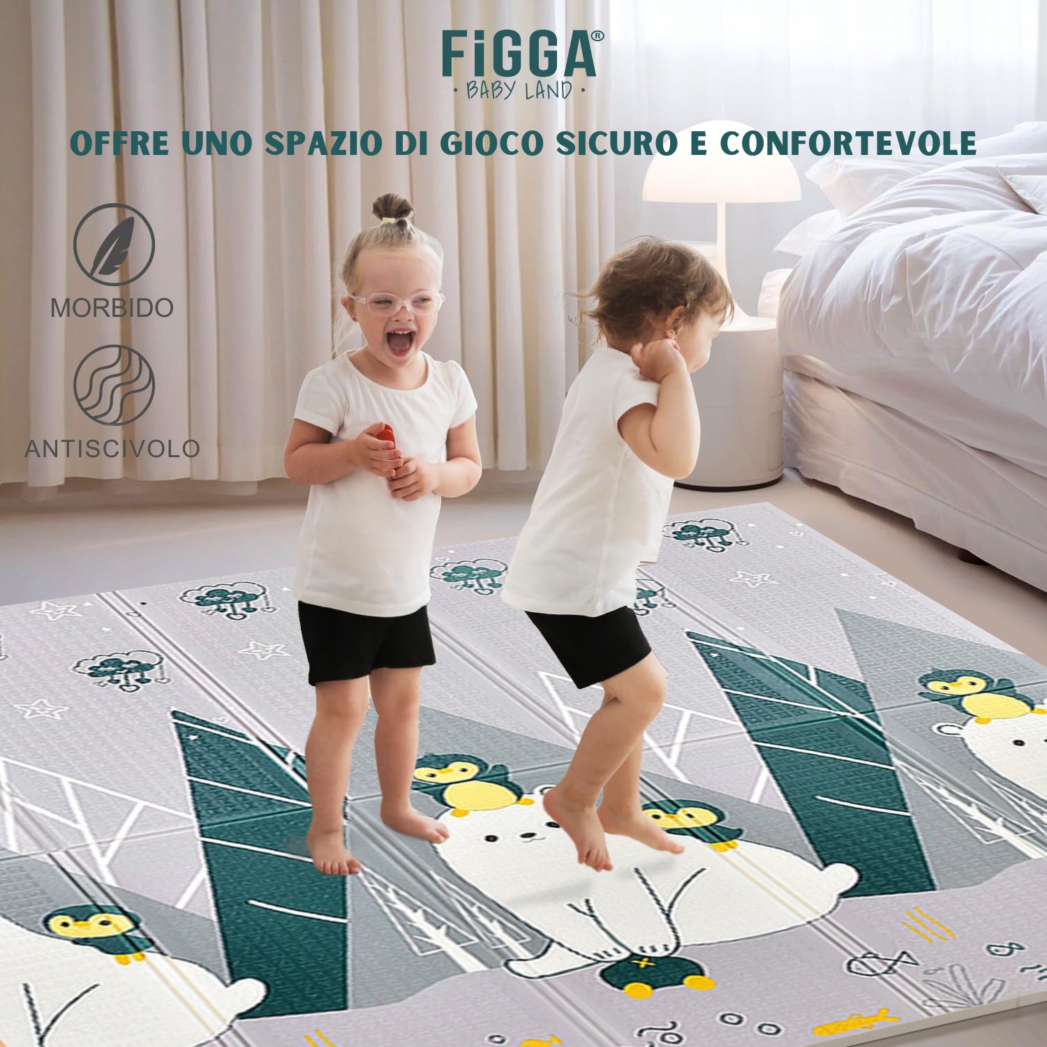 FIGGA Tappeto da gioco FiGGA® per bambini 200 x 180 cm, schiuma protettiva, termoisolante, pieghevole, doppia faccia, tappetino interattivo ed educativo per attività di gioco del neonato, stampa 02.
