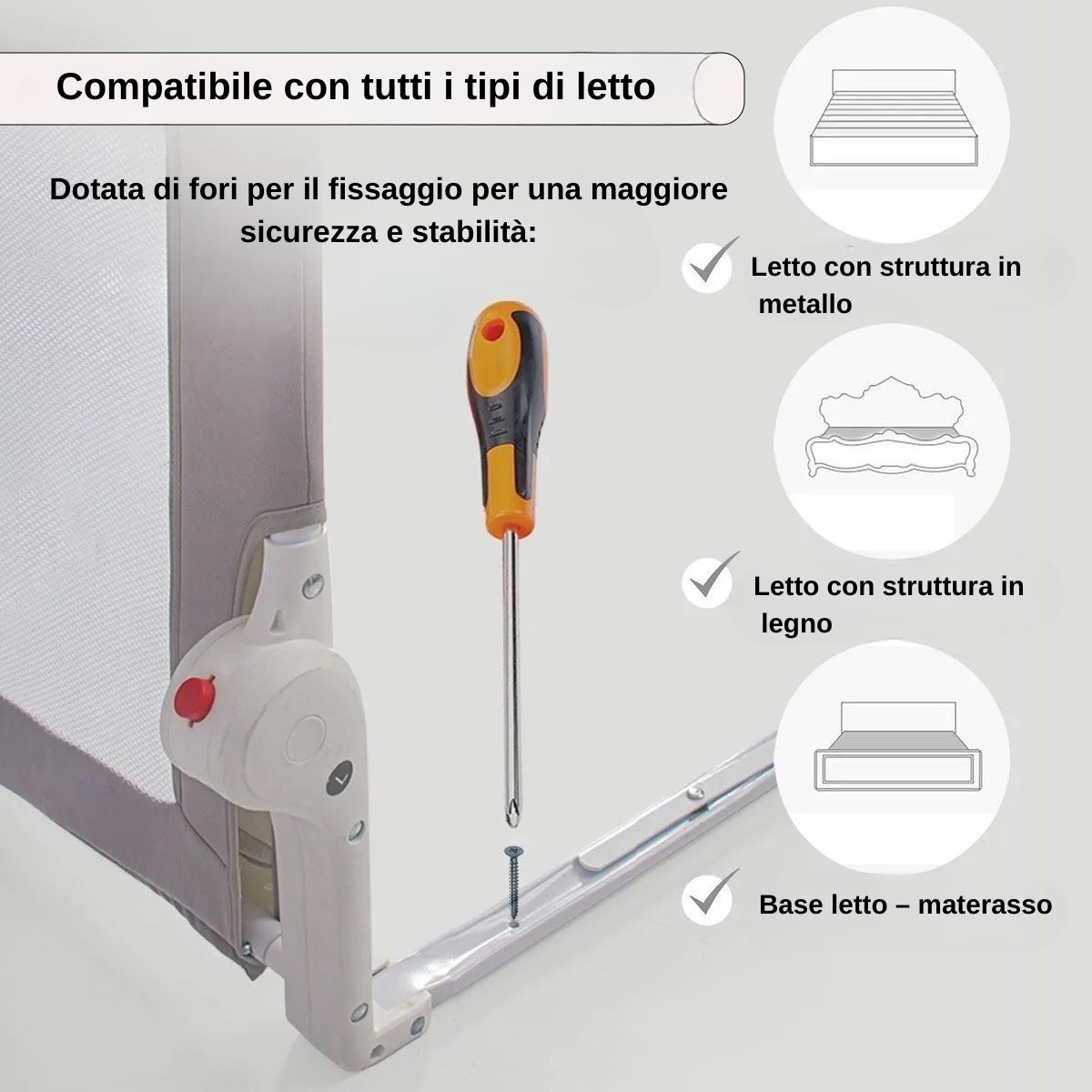 Sistema ribaltabile ultra-pratico – Si piega facilmente fino a 180°, offrendo accesso comodo al letto. Perfetto per prendere in braccio il bambino, cambiare le lenzuola o arieggiare la stanza, senza dover smontare la barriera.