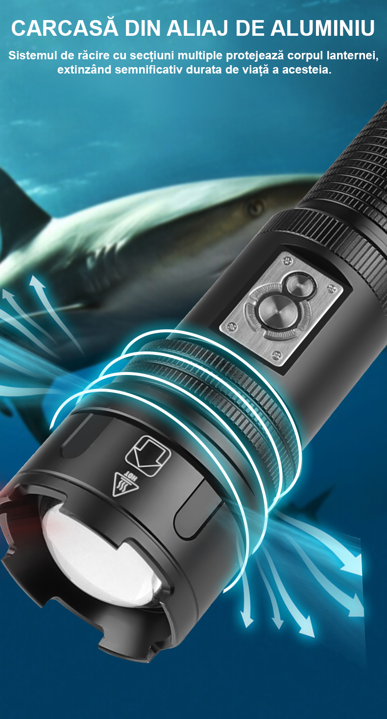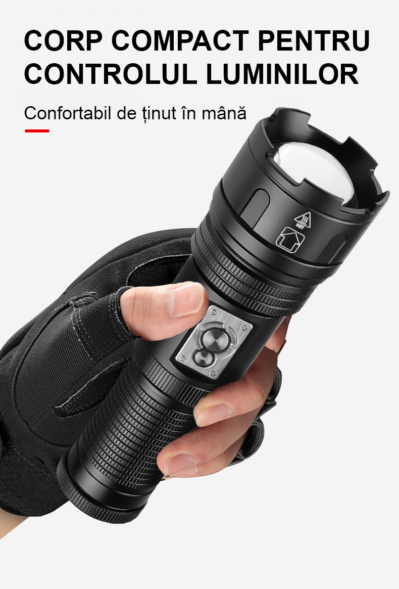 Cu o structura solida din aliaj de aluminiu de inalta calitate, lanterna noastra este proiectata sa reziste la uzura, socuri si impacturi accidentale. Indiferent de provocarile cu care te confrunti in natura, aceasta lanterna puternica iti va sta alaturi in toate aventurile tale.